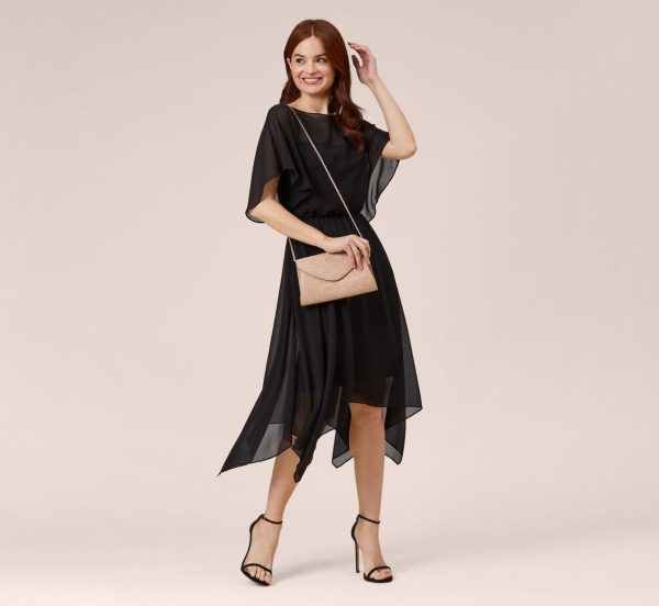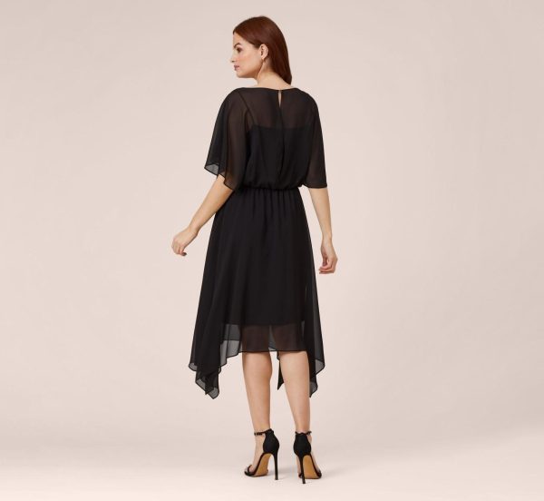 Chiffon Blouson Midi Dress With Flutter Sleeves In Black Black | Women Adrianna Papell Day Dresses