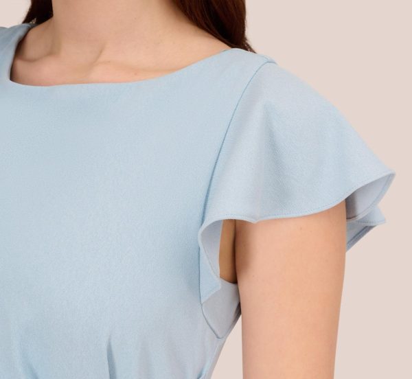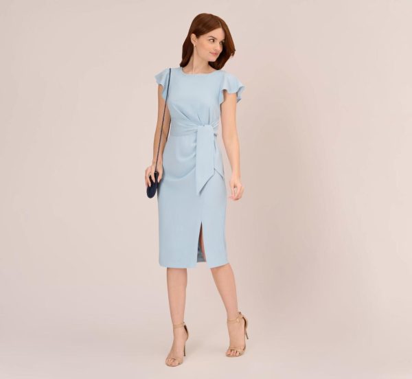 Iconic and elegant, you’ll be reaching for our streamlined sheath dress over and over, we promise. Crafted of a lightweight woven crepe fabric, this midi dress features a flattering bateau neckline, short flutter sleeves (love) and has a slight slit opening along the side for ease of movement. Finished with a waist-defining self-tie belt. A perfect choice to wear from day to night, from the office to dinner as well as to bridal showers and wedding receptions.