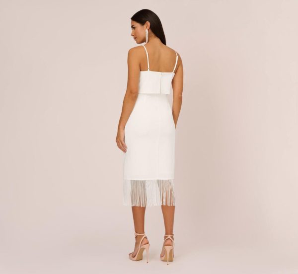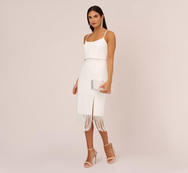 Crepe Popover Midi Dress With Fringe Trim In Ivory Ivory | Women Adrianna Papell Midi Dresses