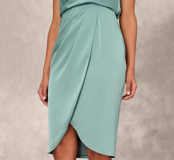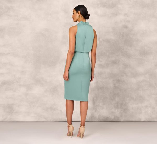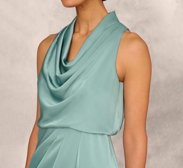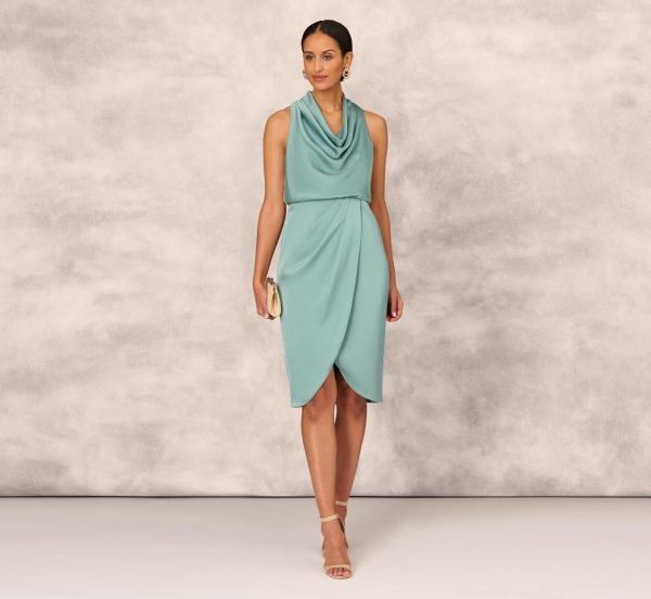 Crepe Satin Back Cowl Neck Midi-Length Blouson Cocktail Dress In Green Slate Green Slate | Women Adrianna Papell Cocktail Dresses