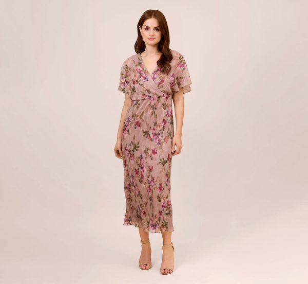 Effortlessly chic and feminine, our midi dress is fashioned from lightweight metallic crinkled mesh in a romantic floral pattern. This timeless dress is designed in our iconic blouson bodice with surplice neckline and airy dolman sleeves for a flattering fit and feel. The mermaid style midi skirt has a softly flared hem. Sleek back hook-and-eye/zip closure.