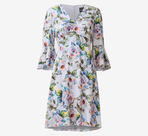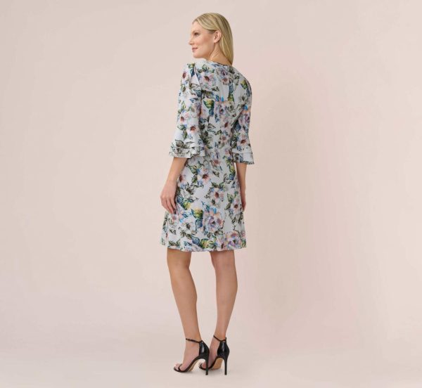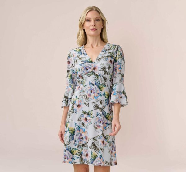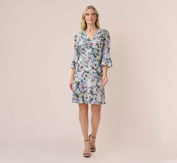 Floral-Print Stretch Chiffon Short Fit-And-Flare Dress In Grey Multi Grey Multi | Women Adrianna Papell Floral Dresses