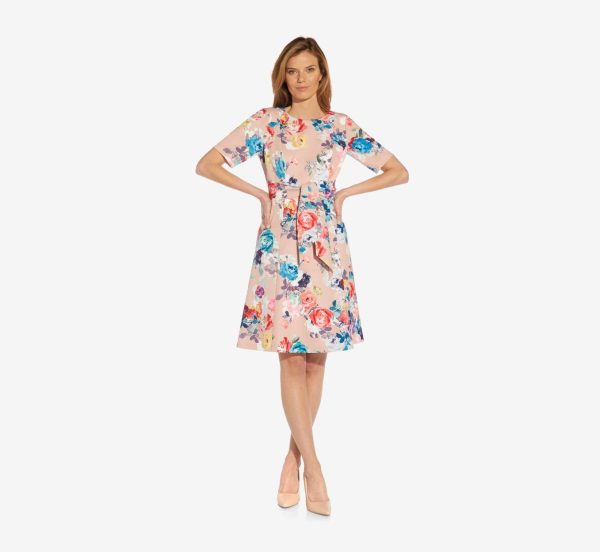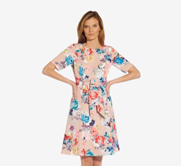 Our incredibly comfortable, easy A-line dress, accented with this season’s most striking florals. Details we love: the feminine tie front, chic elbow sleeves and flattering seamed detail. Gets invited to every party, day or night.