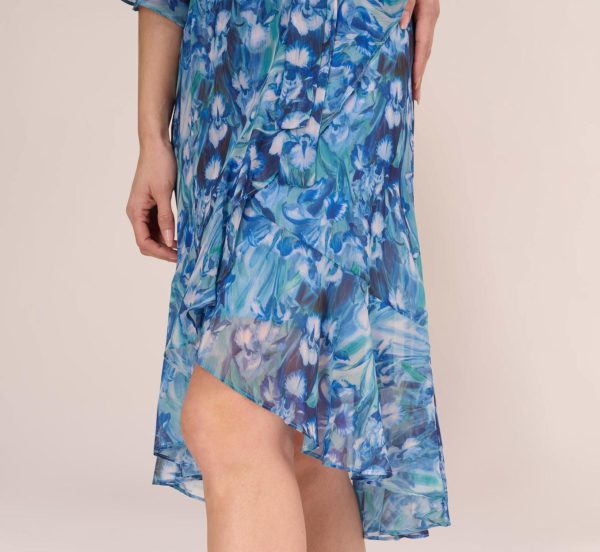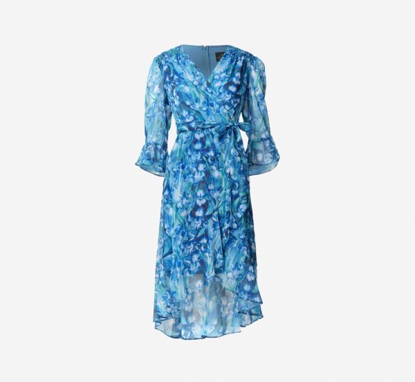 Lightweight, airy and floats like a dream, our softly woven chiffon faux wrap dress is designed in a seriously romantic floral print. We love the surplice v-neckline, three-quarter bell sleeves, self-tie belt and ruffled high/low hem. Perfect for bridal showers, brunch dates, wedding receptions and packs easily to take on vacation.