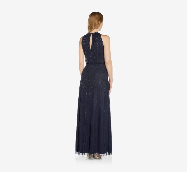 Modern, feminine and so graceful, designed with our signature (and ultra-flattering) blouson bodice, which softly streamlines and blouses subtly over the waist. Details We Love: the ultra-flattering halter neckline, stunning hand-beadwork and delicate pattern.