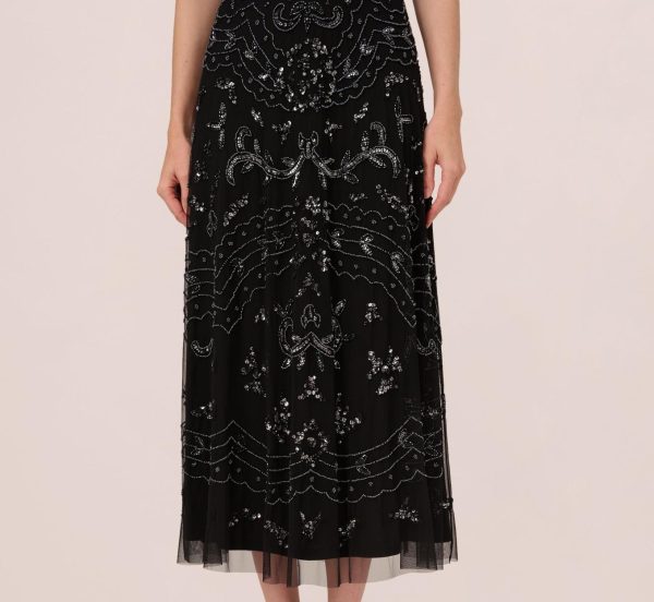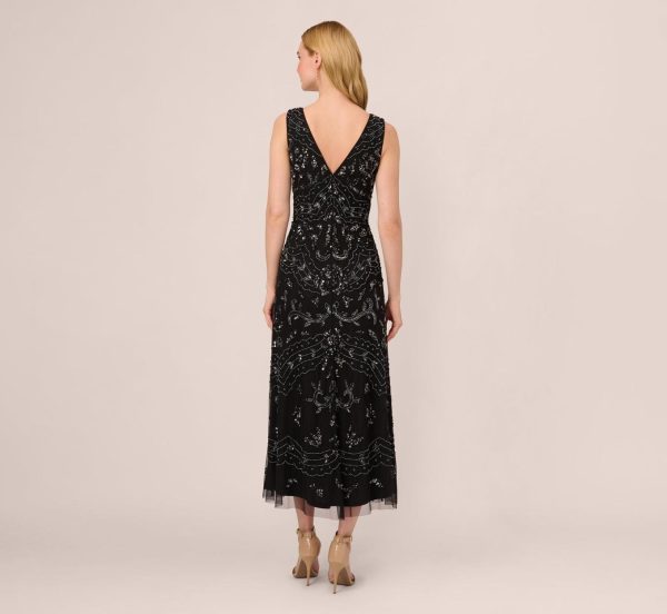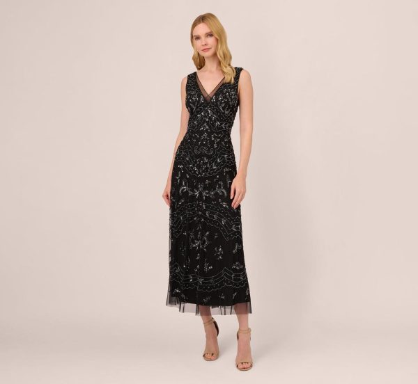 Hand-Beaded Ankle-Length Dress In Black Gunmetal Black/Gunmetal | Women Adrianna Papell Long Dresses