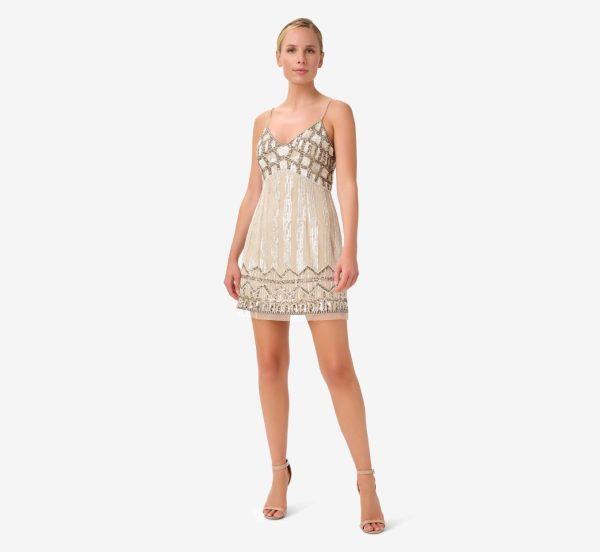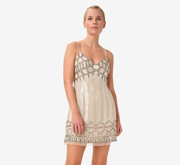 Hand-Beaded Short Cocktail Dress In Biscotti Biscotti | Women Adrianna Papell Cocktail Dresses