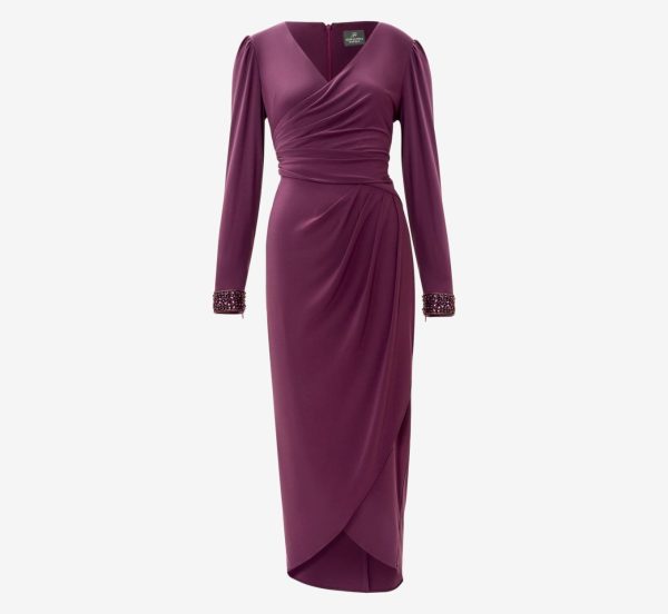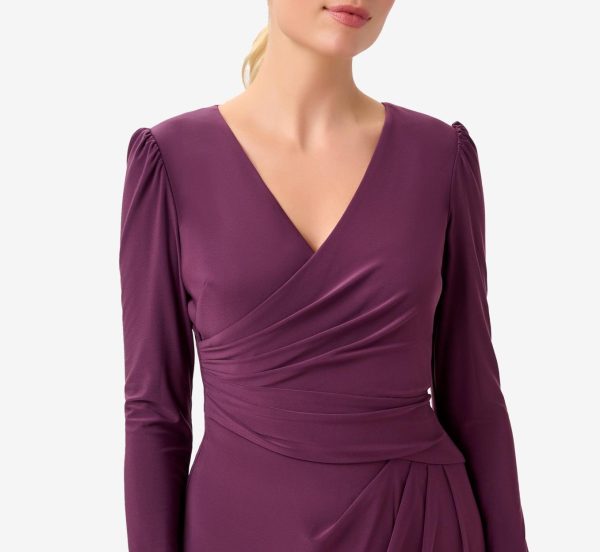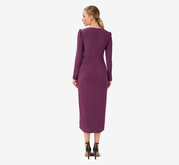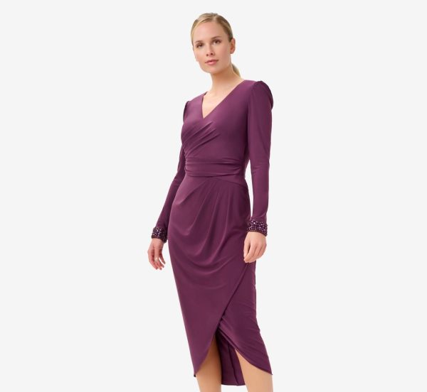 Jersey Midi-Length Wrap Dress With Beaded Cuff In Rich Shiraz Rich Shiraz | Women Adrianna Papell Midi Dresses