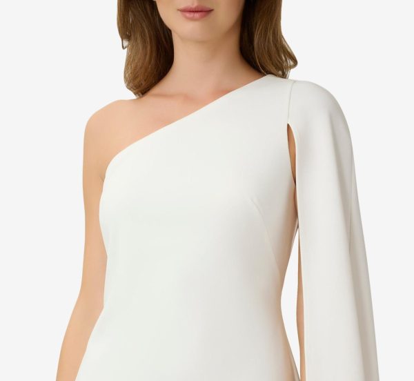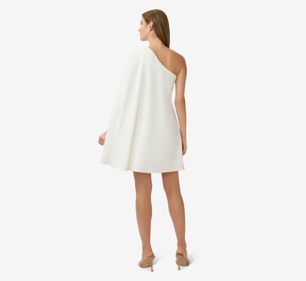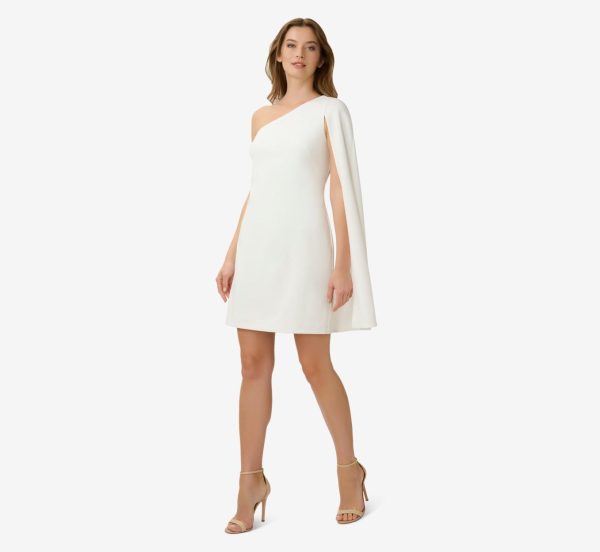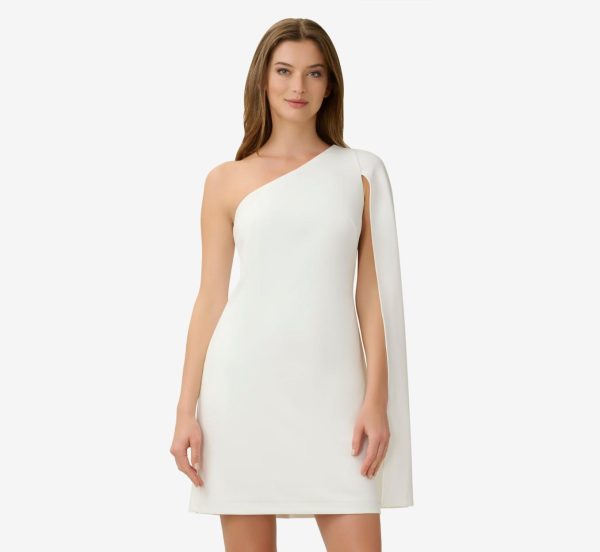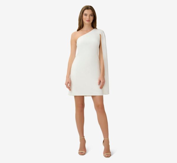 Equal parts chic and comfortable, our one-shoulder cocktail dress, fashioned from a stretch knit crepe fabric, brings the drama with the superstar-worthy back cape. This sleeveless design in an easy-fitting sheath silhouette with a flattering no waist seam design and a sleek side hook-and-eye/zip closure.