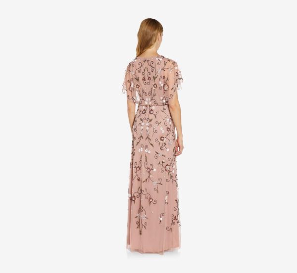 The best of all worlds: a feminine, striking, dream-fitting gown, with shimmery hand beadwork in a standout pattern, designed in our signature blouson fit, which streamlines the waist and drapes easily over it. Details We Love: those feather-light flutter sleeves.