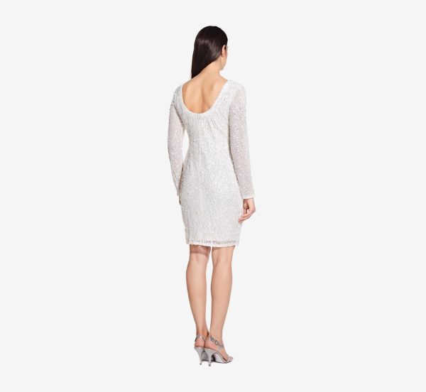 Make a statement at your next party when you rock this showstopping sequin dress for the night. Flattering and fabulous, this beautiful special occasion dress features a boat neckline, long, semi-sheer sleeves and a sophisticated sheath skirt that expertly skims curves. The back of this perfect party dress features a scoop back and zipper closure. All-over sequins sparkle and shine in the light, putting this embellished dress one step above the rest. Pair this jaw-dropping cocktail dress with strappy heels and a cool, little clutch to finish off a fabulous look.