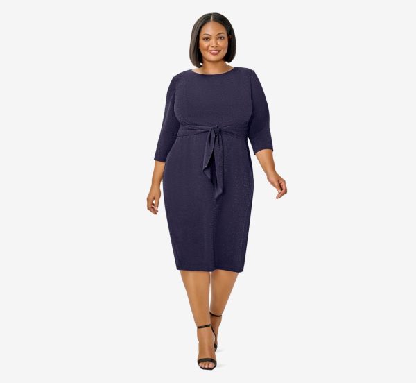 A most-loved best seller, our streamlined sheath gets a soft but shimmering update in our refined metallic knit. Details We Love: a modern crew neckline, chic ¾-length sleeves, and the feminine tie at the front.