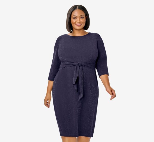 A most-loved best seller, our streamlined sheath gets a soft but shimmering update in our refined metallic knit. Details We Love: a modern crew neckline, chic ¾-length sleeves, and the feminine tie at the front.