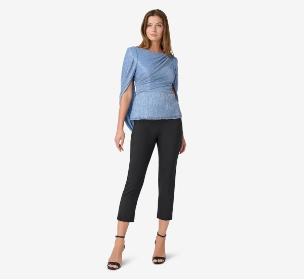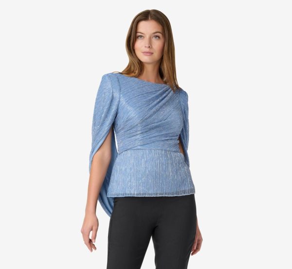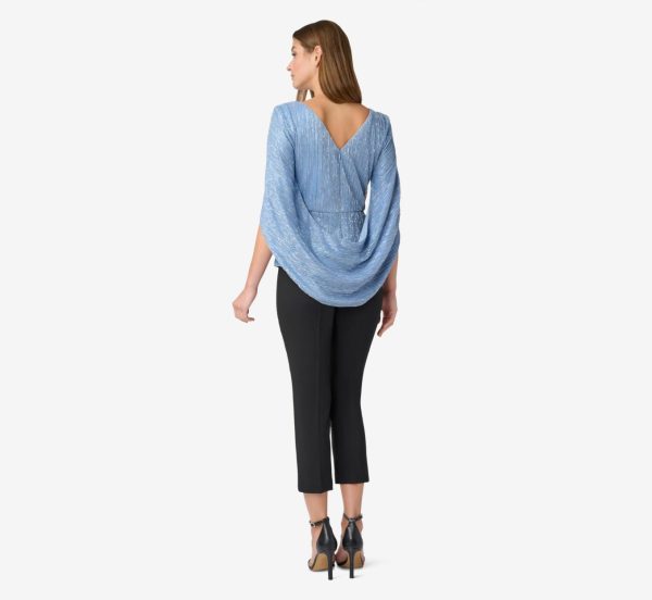 Get ready to feel good and look amazing in our shimmering crinkled metallic knit top featuring a dramatic cowl back and ruching for textural interest. Details: a flattering bateau neckline and sleek back zipper. Perfect to team with jeans for a casual outing and a pencil skirt for an evening out.