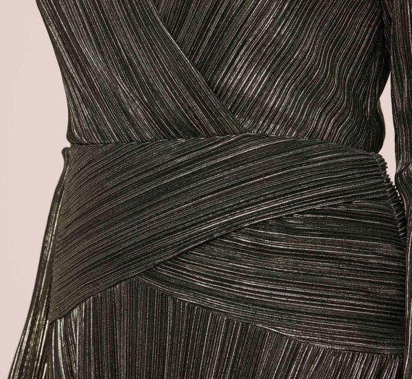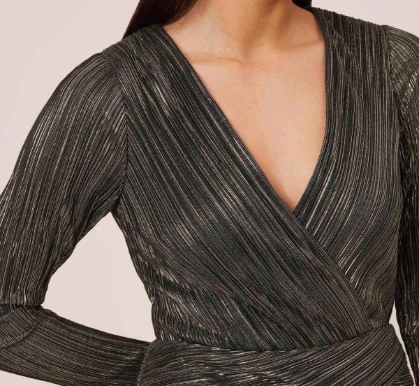 Pleated Foil Knit Short Cocktail Dress In Black Gold Black/Gold | Women Adrianna Papell Cocktail Dresses