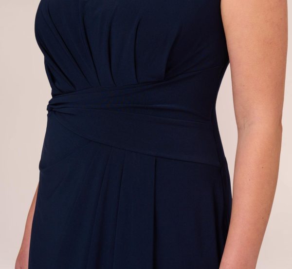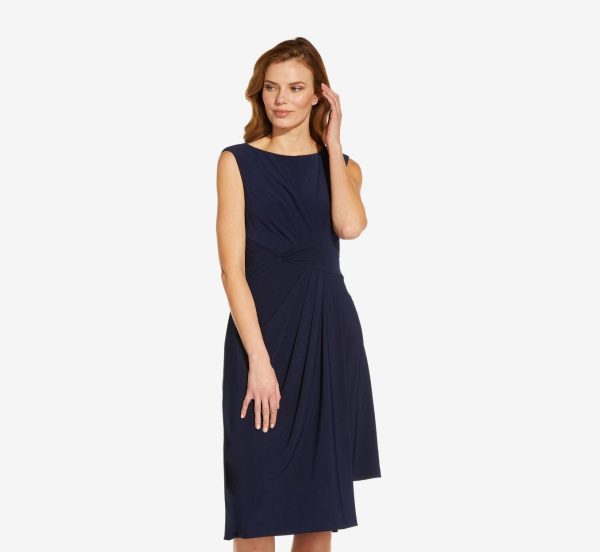 Instant chic: the midi-dress done in our incredibly soft and effortless matte jersey, with a graceful, pleated drape and ultra-flattering asymmetrical skirt overlay.