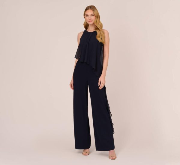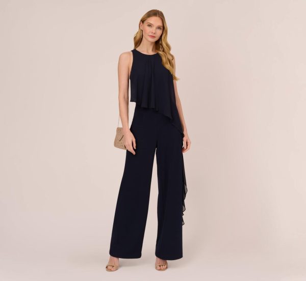 Plus Size Chiffon And Crepe Wide Leg Jumpsuit In Midnight Midnight | Women Adrianna Papell Jumpsuits