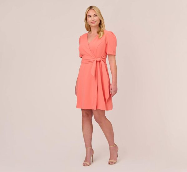 Sophisticated and on point, our wrap-style dress is made in a lightweight and smooth stretch knit crepe and features an oversized self-tie belt (so flattering) and modern elbow sleeves. Sleek back zip closure. Perfect for brunch, bridal showers, cocktail hours and dinner dates.