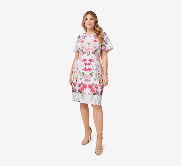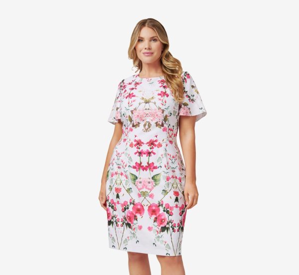 Plus Size Floral-Print Crepe Midi-Length Sheath Dress In Ivory Pink Multi Ivory Pink Multi | Women Adrianna Papell Floral Dresses