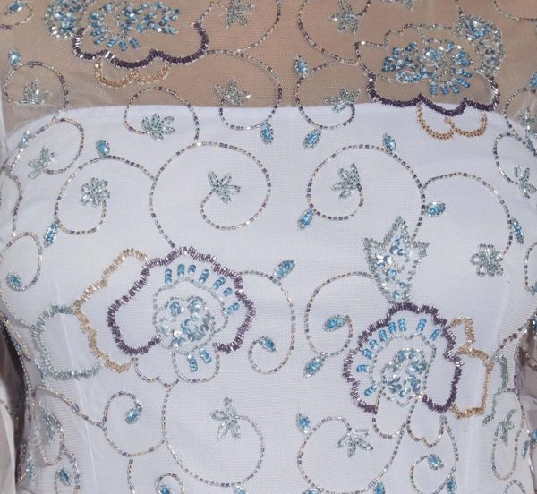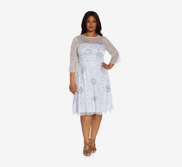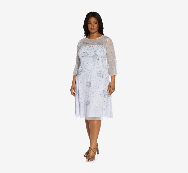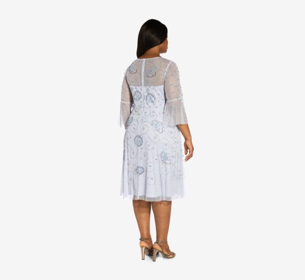 Fun and playful, our midi cocktail dress boasts a brilliant display of dazzling hand beadwork in a feminine floral pattern. Obsessed with the sheer illusion neckline and the three-quarter sleeves with bell cuffs. We’ve added gentle pleats along the soft skirt for added movement and sway. Be best dressed guess at cocktail hours, wedding receptions or black-tie galas.