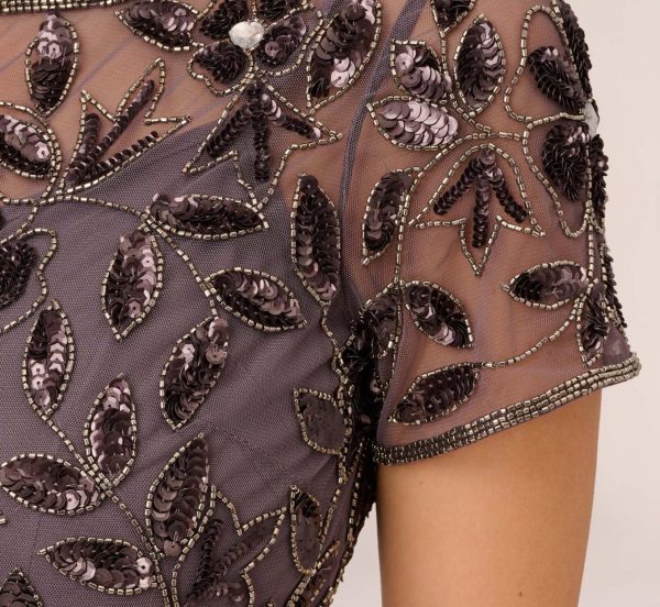 Plus Size Hand Beaded Short Sleeve Floral Godet Gown In Night Plum Night Plum | Women Adrianna Papell Plus Size