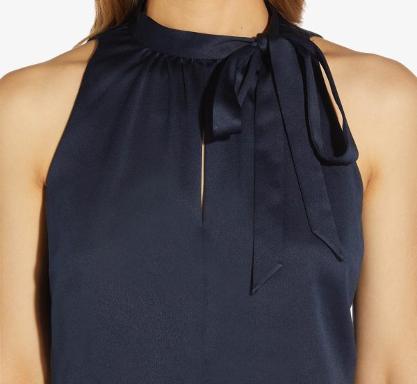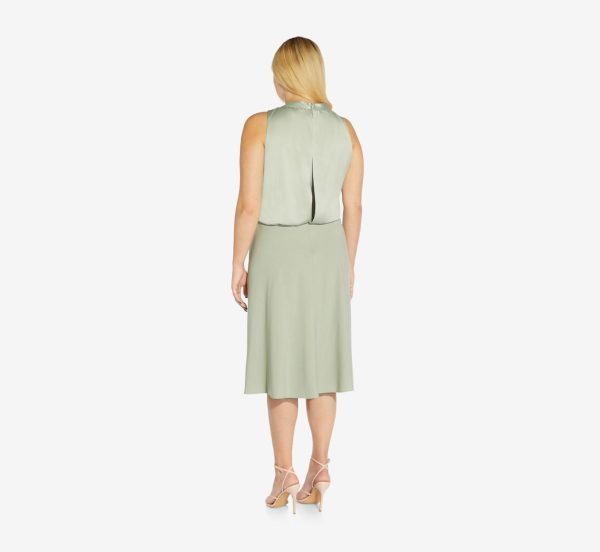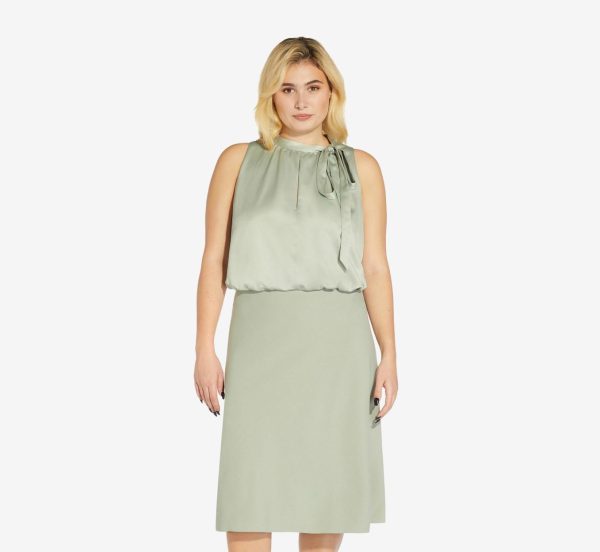 Plus Size Satin Crepe Midi-Length Halter Dress With Keyhole In Willow Willow | Women Adrianna Papell Day Dresses