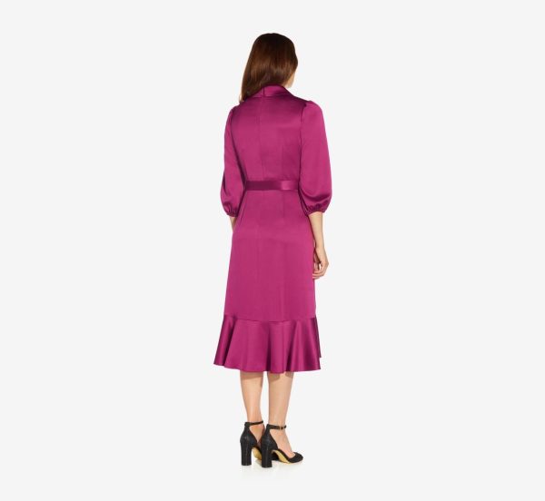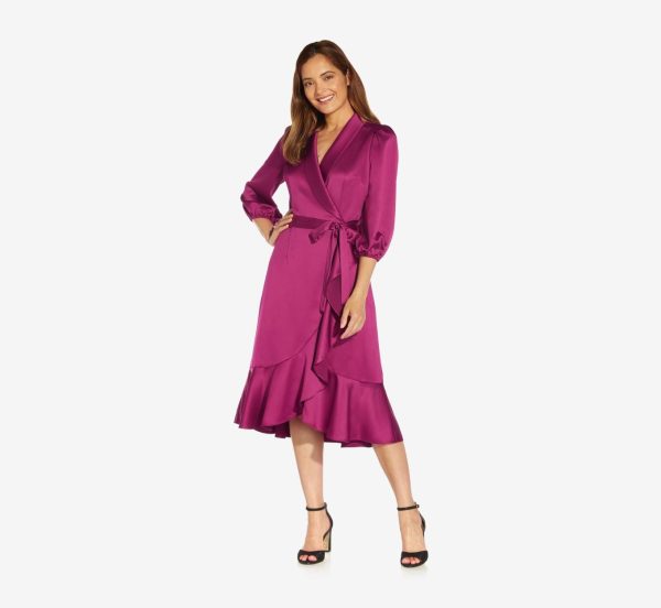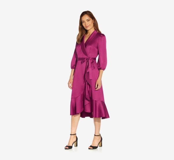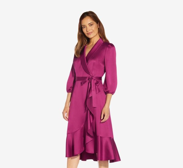 Chic and luminous. An easy wrap dress in our silky satin crepe, with a tuxedo-inspired shawl collar and wrap skirt. Details We Love: the elegant 3/4 bishop sleeve and soft tie at the waist.