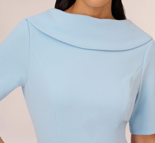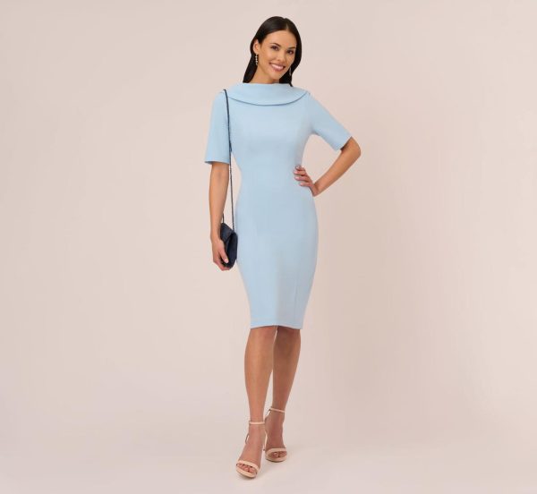 A sophisticated look from work to cocktail hour begins with this short sleeve dress. This crepe dress features short sleeves, a v-back, and a rolled neckline. This midi dress is crafted from stretch crepe fabric for a comfortable look that will last you all day. Style this dress simple pointed pumps for a work appropriate look. Swap them with a strappy heel to transition this short sleeve dress to happy hour or date night.