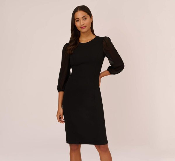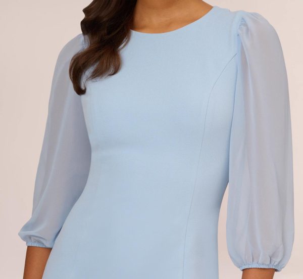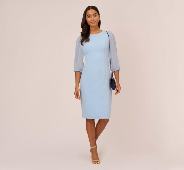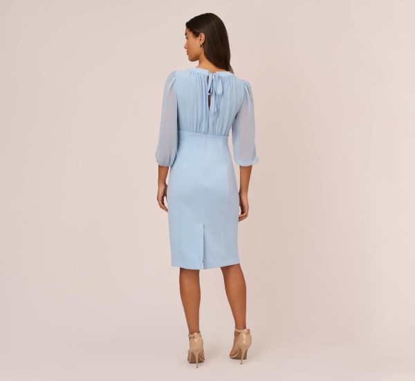 Stretch Crepe And Chiffon Midi-Length Sheath Dress In Elegant Sky Elegant Sky | Women Adrianna Papell Day Dresses